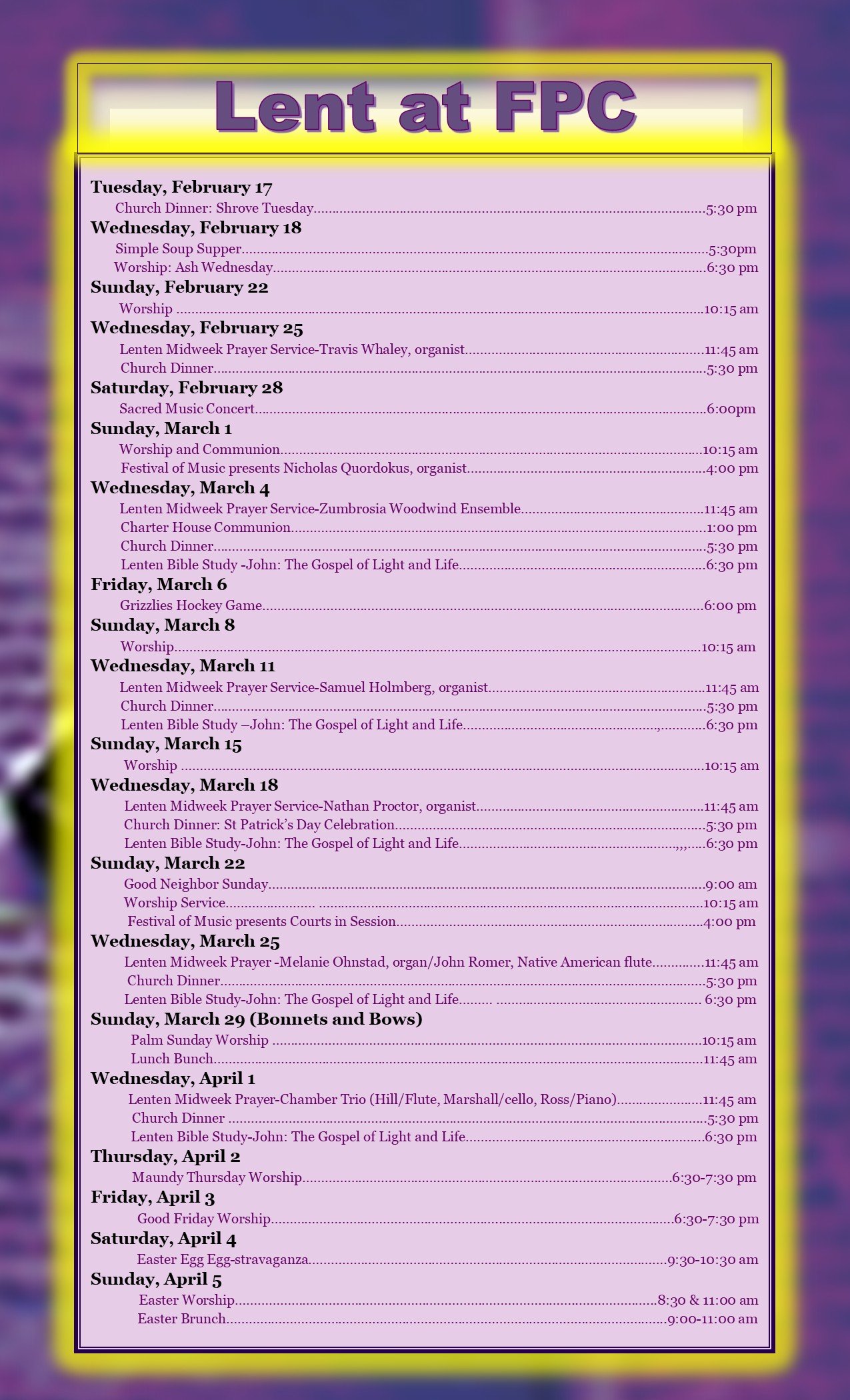 The service is streamed live on FPC’s YouTube Channel.